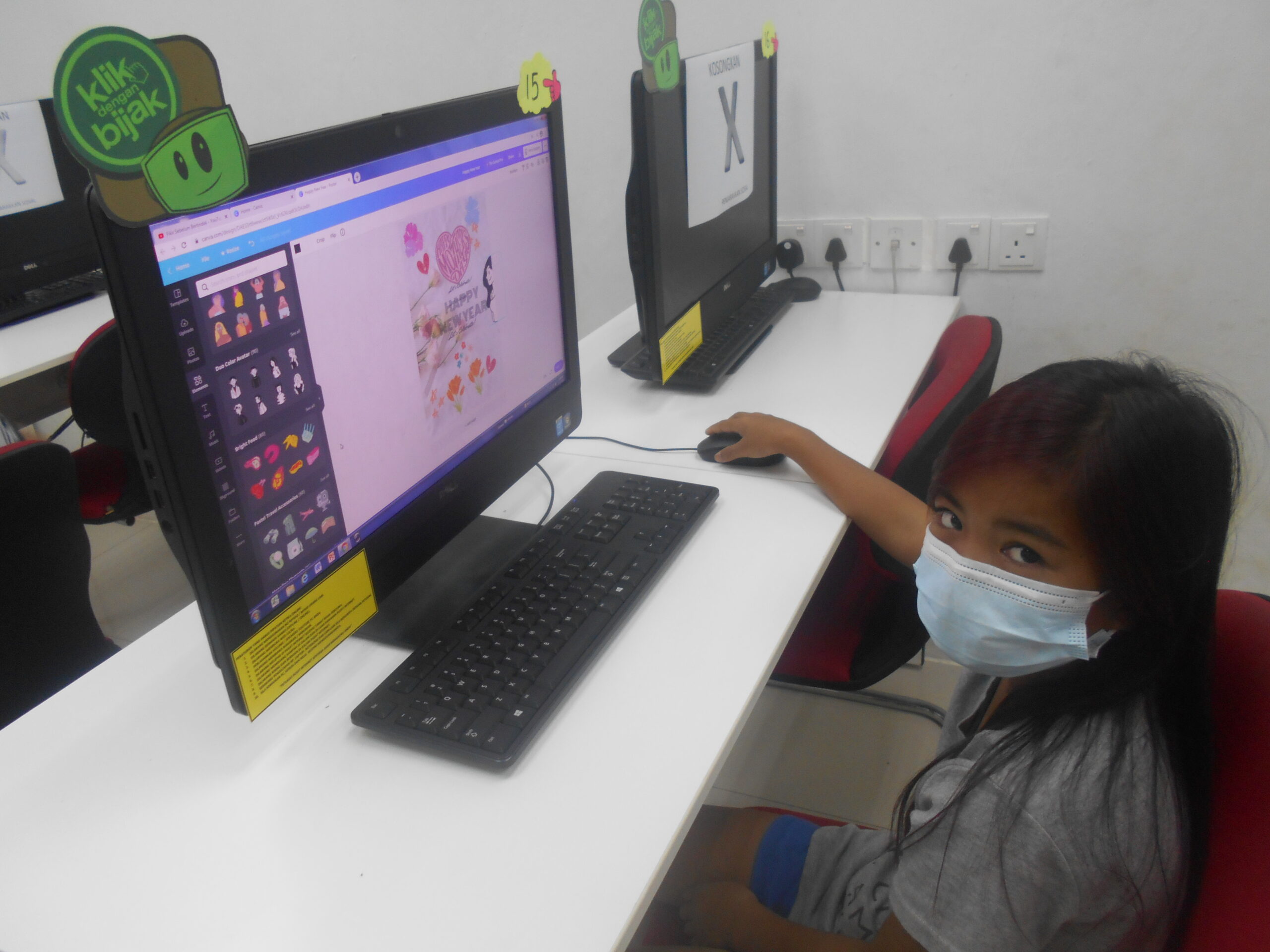 Kelas : Klik Dengan Bijak, Mewarna Online, Asas Teknologi Maklumat dan Telekomunikasi, Asas Penjagaan Komputer, Microsoft Office (Latihan Menaip), Kelas Canva (Membuat Kad Ucapan) dan Word Search Puzzles secara online.